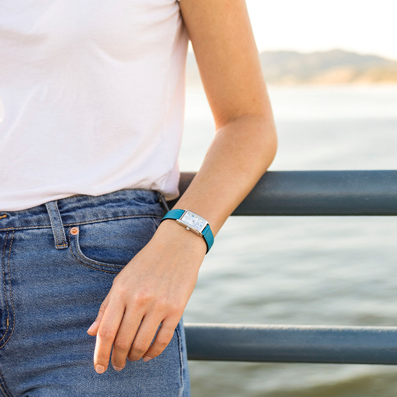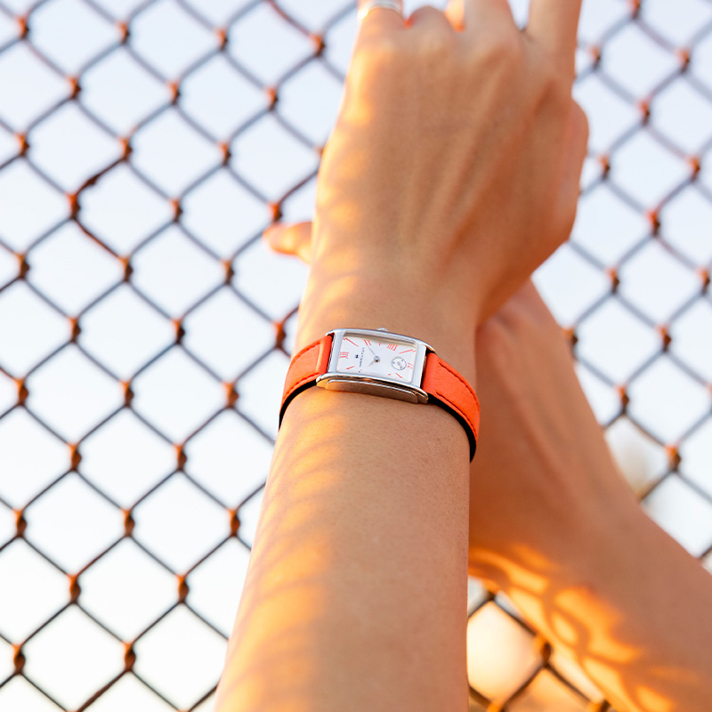 如今,这一美式经典杰作备有冷调绿松石色或明媚的珊瑚色皮革表带可供选择,搭配同色系罗马数字和棱角分明的精钢表壳,让人眼前一亮。