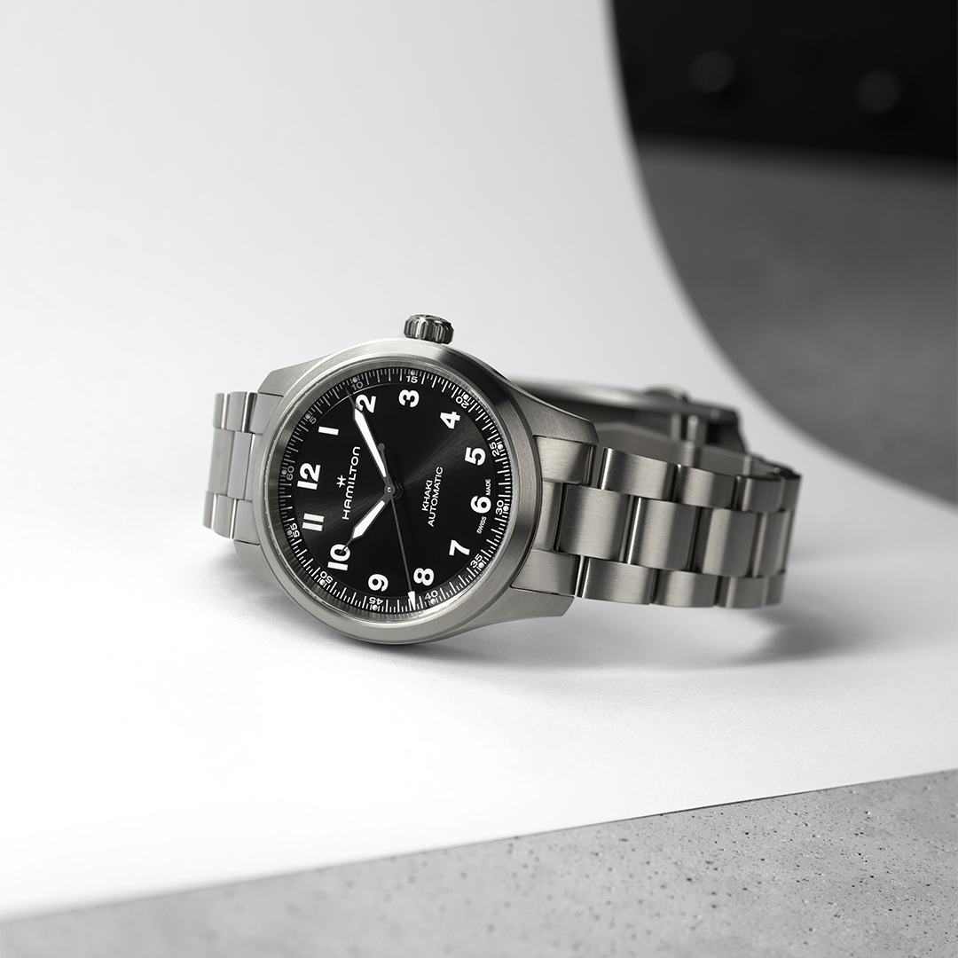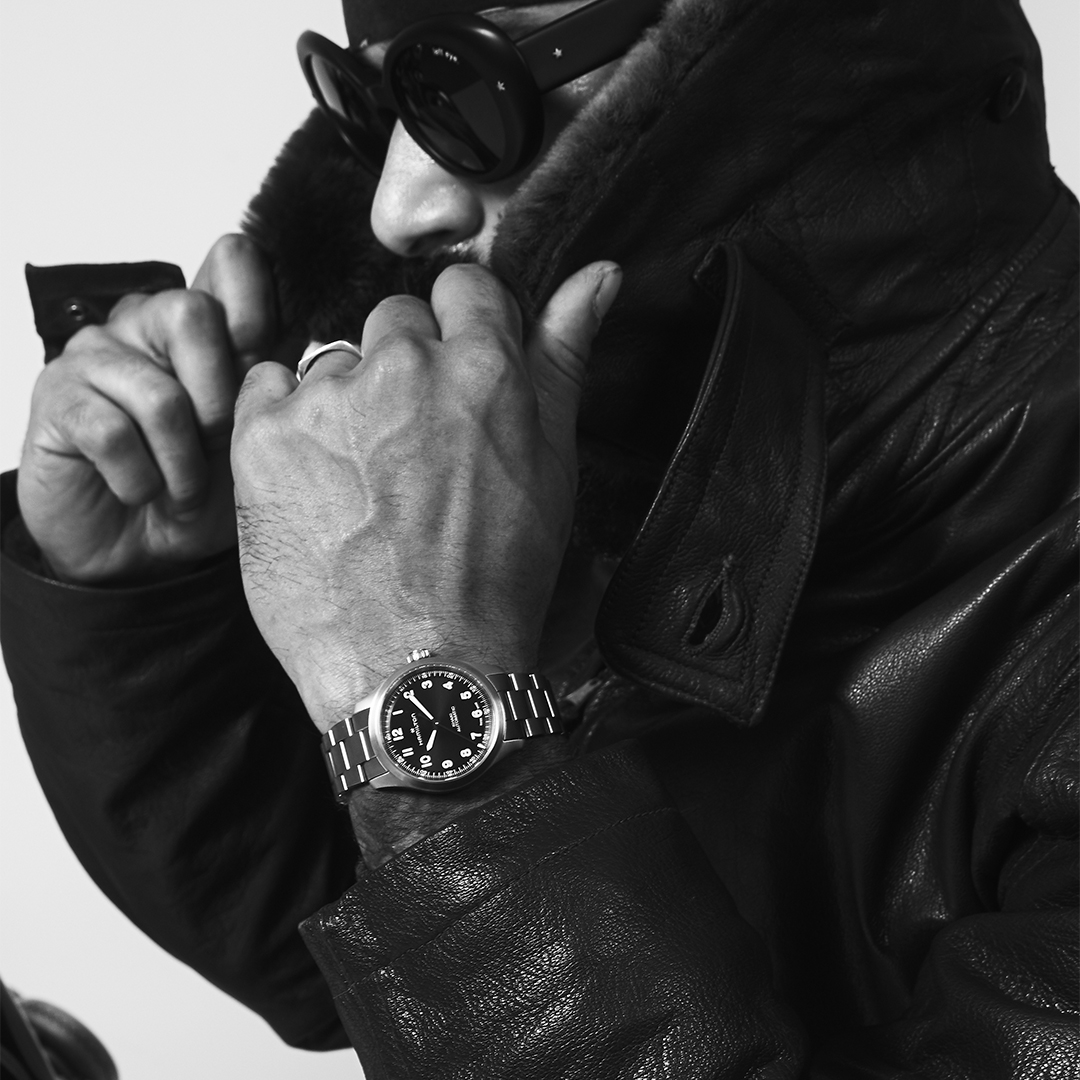 汉米尔顿的设计团队与Engineered Garments密切合作,打造出这款兼具个性与持久魅力的腕表。其中颇为引人注目的设计元素是腕表的尺寸。铃木选择了36毫米的表壳尺寸,这不仅向初代经典设计致敬,也使其更具中性美感与多样化的搭配可能性。