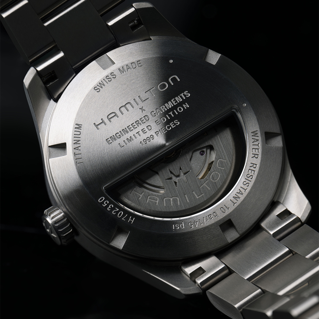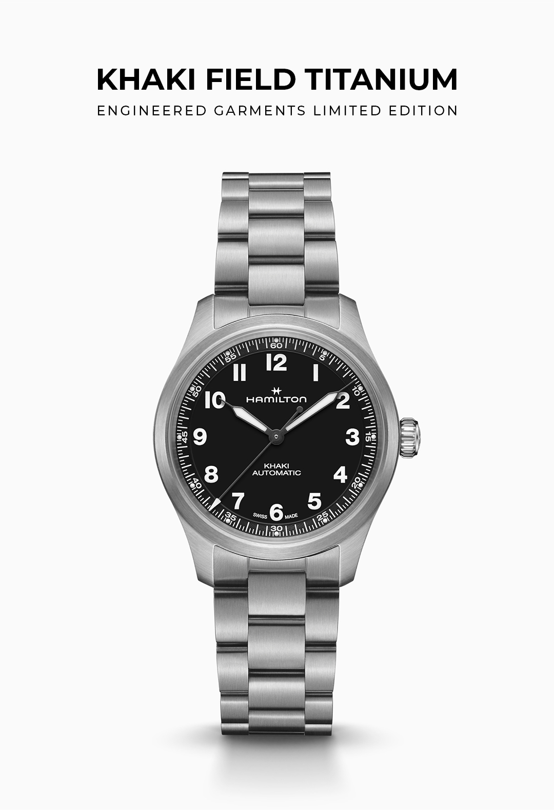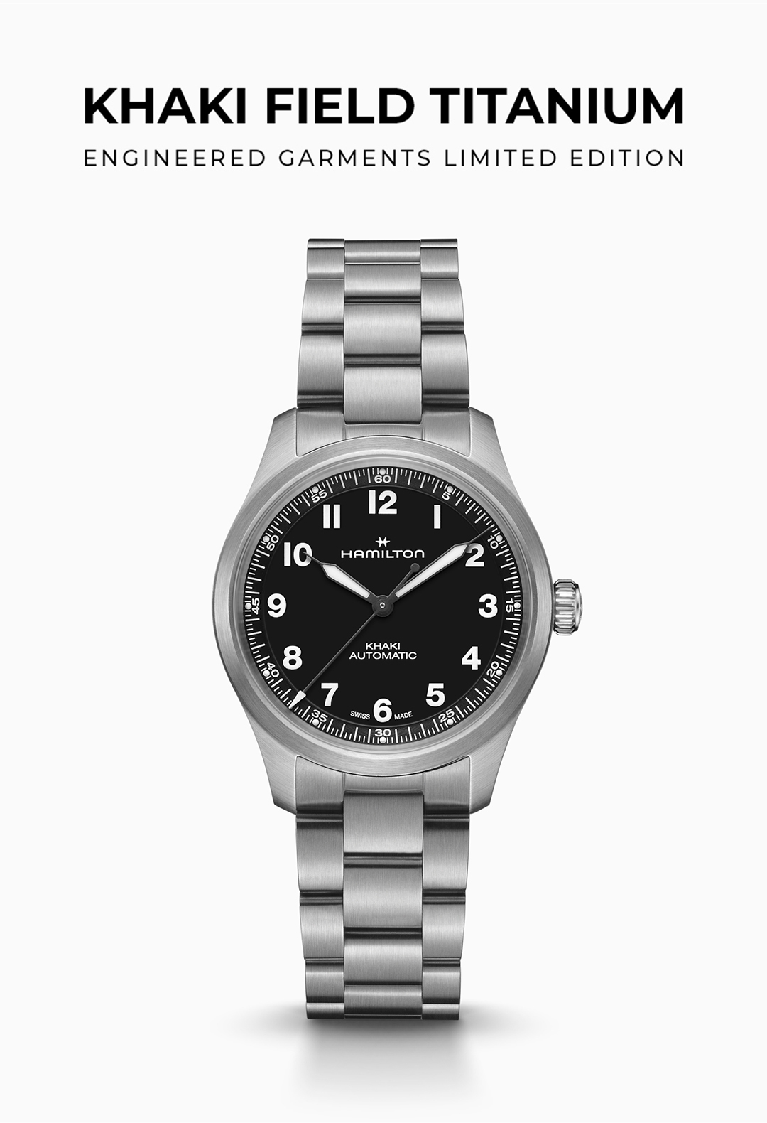 汉米尔顿的卡其野战系列腕表与Engineered Garments服装系列坚固耐用、经久不衰且富有实用性的品质相得益彰。这款限量版卡其野战系列钛金属腕表彰显了双方共同的设计理念。