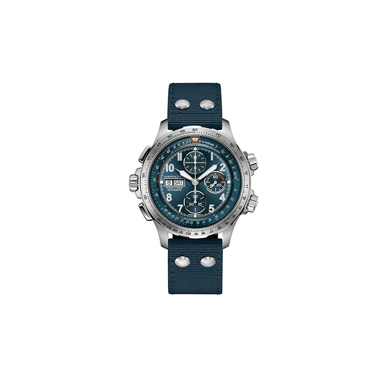 卡其航空系列超越风速自动计时码表是一款令人印象深刻的飞行员腕表,配备蓝色表盘和蓝色表带,不论外形与功能皆非同凡响,激发人们对天空的向往。