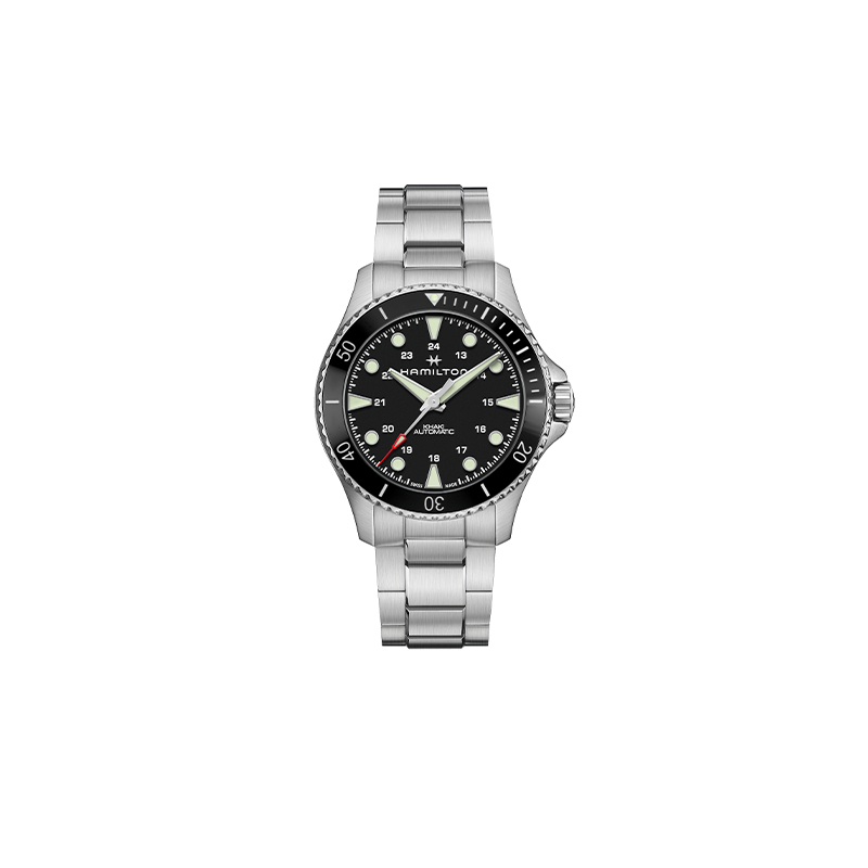 佩戴卡其海军系列水肺自动腕表,潜入蔚蓝深海。这款腕表采用陶瓷表圈,轻松应对海水、盐分和沙砾的考验。