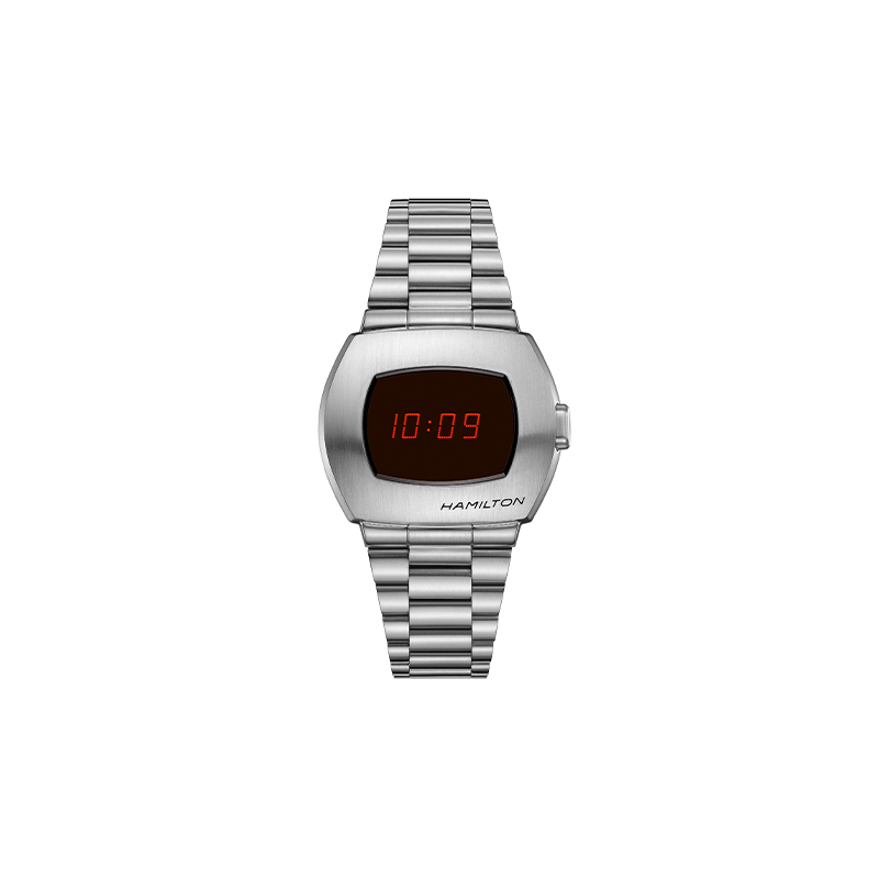 PSR数字石英腕表充满复古未来主义风格,时尚隽永,引领我们走向未来世界。