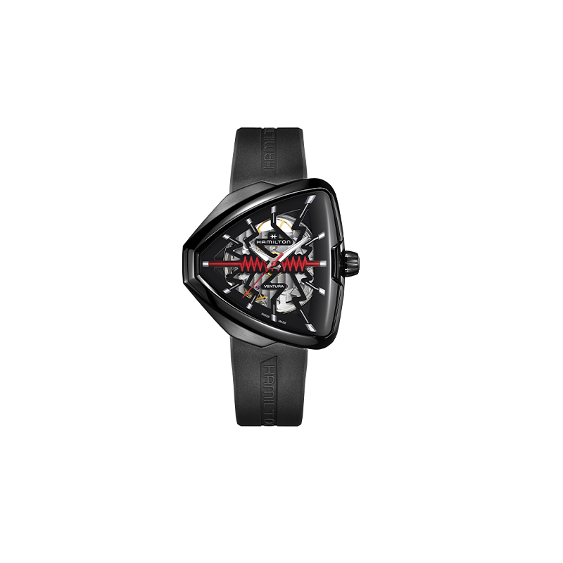 将新颖大胆的三角形探险系列猫王80周年纪念版镂空自动腕表加入你的购物清单,跟随腕表上的电脉冲图案律动!