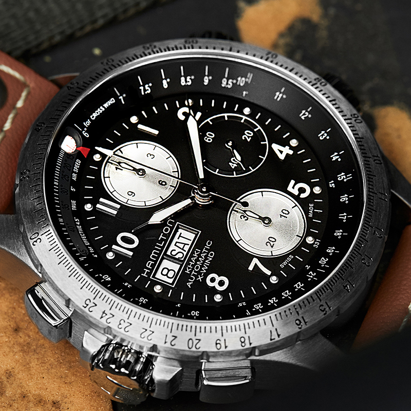 卡其超越风速自动计时码表为热爱飞行的人士配备多重惊喜功能。它是首款配置偏航角计算器的腕表,帮助飞行员准确计算侧风如何影响航程。腕表外观富有科技感,同样适合脚踏实地的都市“飞行员”,是日常相伴的称职“副机长”。