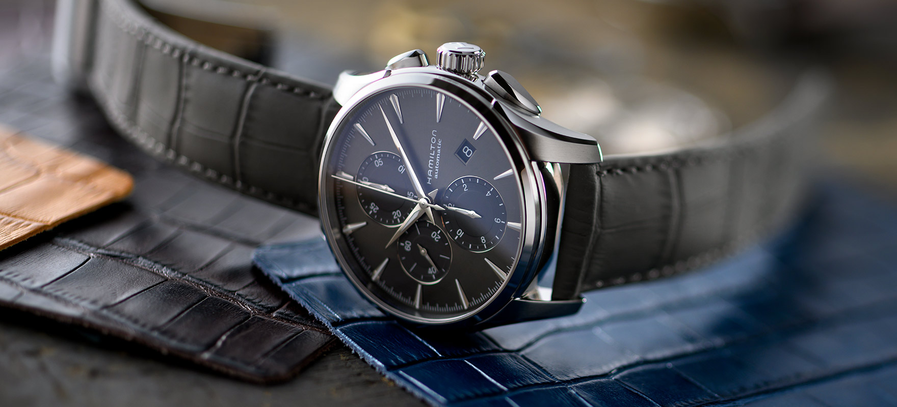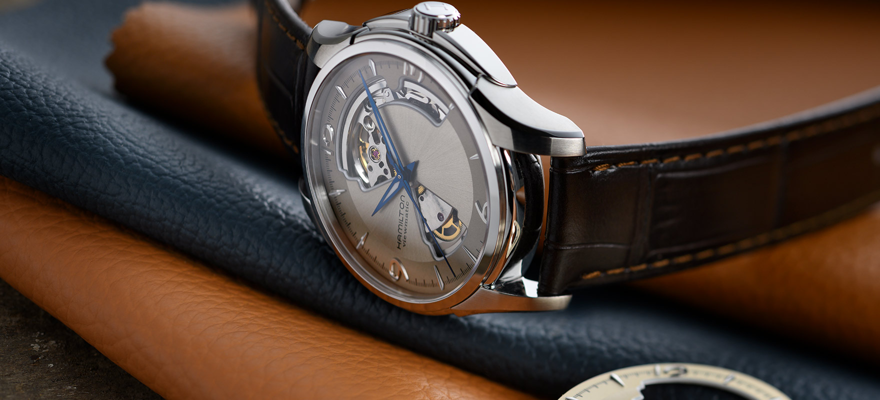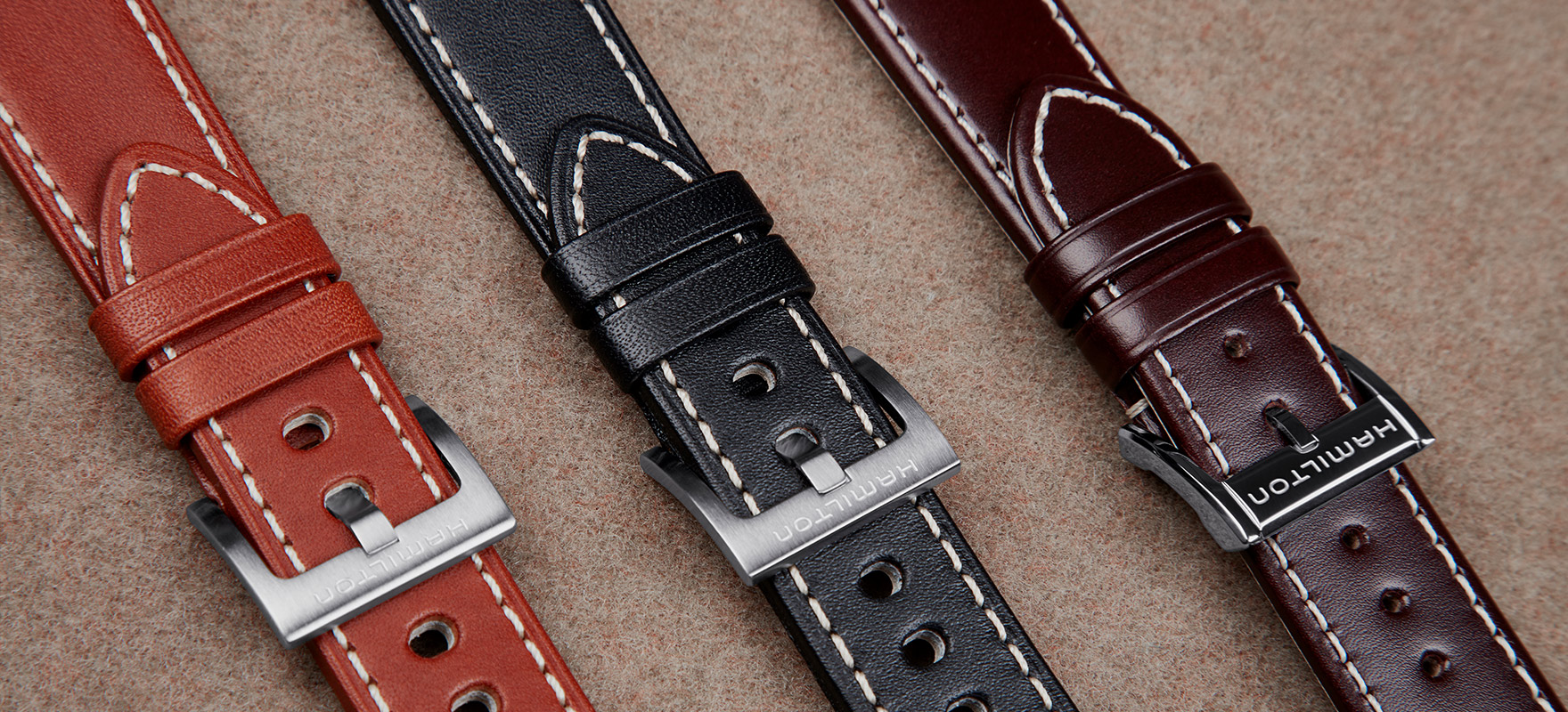 表带可谓成品腕表的画龙点睛之笔,是另一个重要的考量因素。从结实的金属表链到实用的橡胶表带、从精美的皮革表带到耐用的“NATO”北约军用表带,总有一款表带恰当适配汉米尔顿各个腕表系列。全新的爵士系列纤薄腕表于2018年问世,设计理念更进一步,备有一系列可替换皮革表带,可根据个人心情和风格随心选择,以便个性化组合搭配自己的腕表。