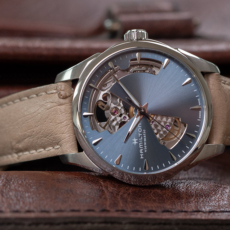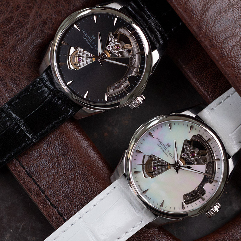 镂空和开心腕表是汉米尔顿的特色表款,我们的设计师崇尚设计原创以及别致的镂空表盘造型,打造出精美雅致的腕表。该设计理念旨在展示确保腕表精准计时的机械部件,而这款腕表引人瞩目的镂空设计下方的装置能够真正彰显爵士系列开心腕表别具一格的风范。汉米尔顿创新型H-10自动机芯可谓制表界的创新典范,以精准、高超的技术精心组装,动力储存可达80小时。