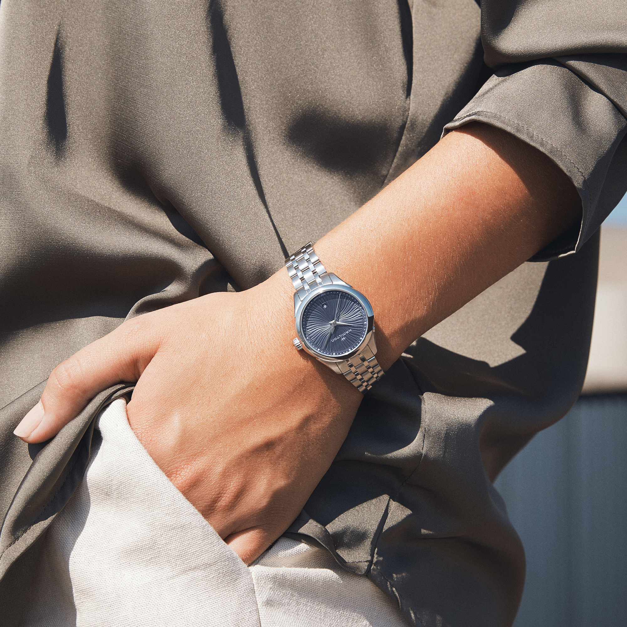 全新爵士系列女士腕表兼具瞩目纹理、璀璨钻石与多尺寸选择,彰显精美雅致的风尚