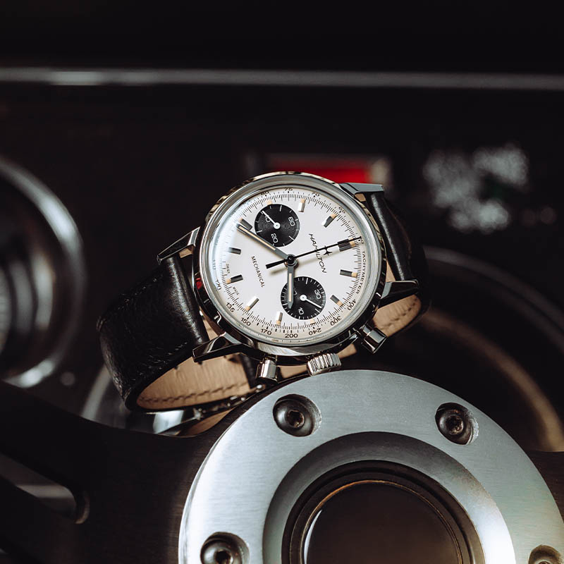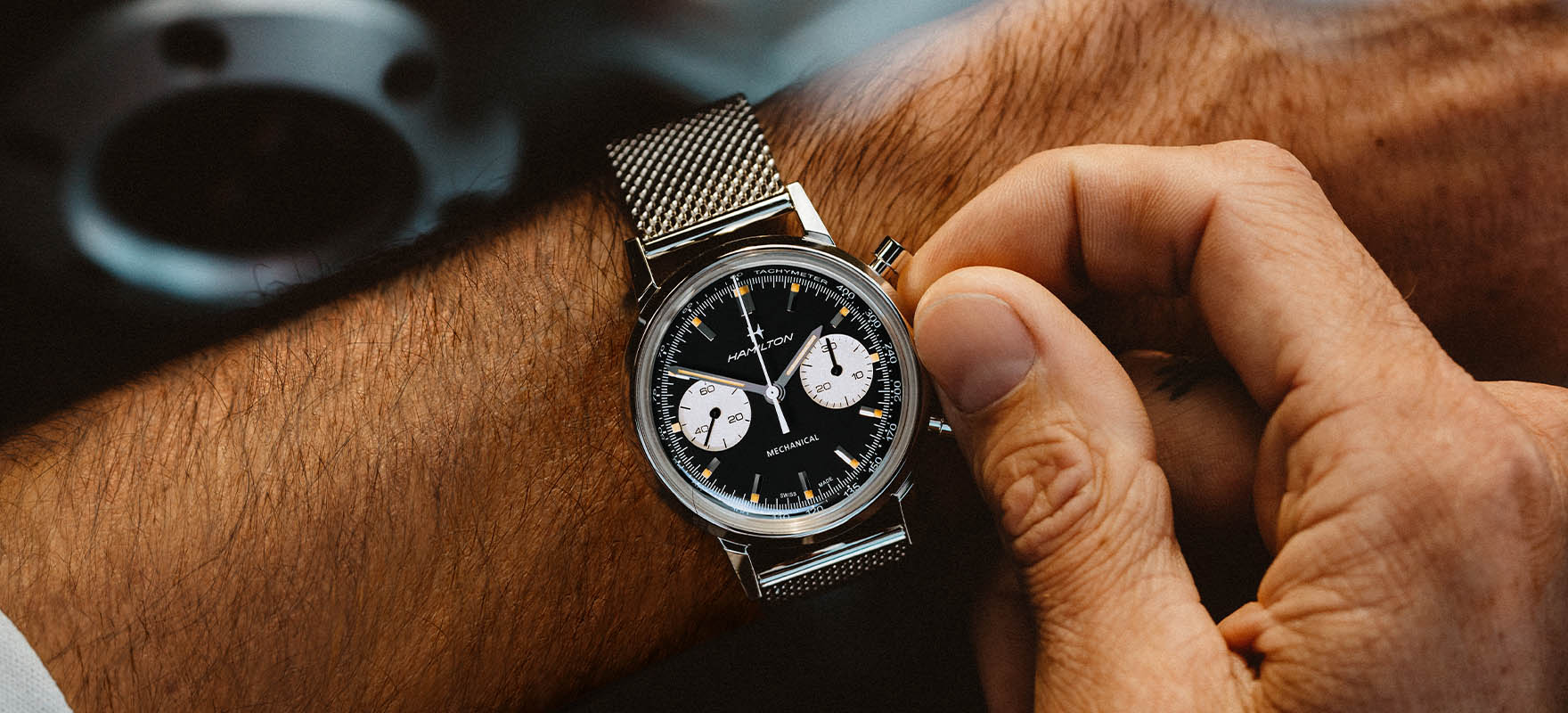 汉米尔顿全新臻薄系列H计时码表是一款将现代科技与复古风尚巧妙融合的机械腕表。