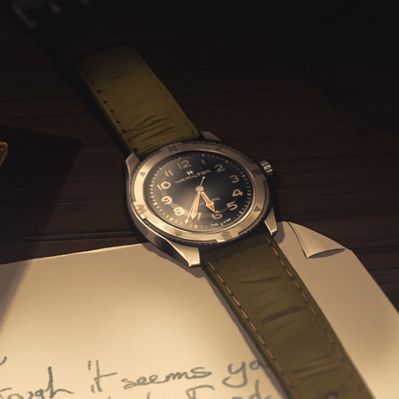 主角山姆·费舍尔(Sam Fisher)本人佩戴着两款汉米尔顿腕表:卡其野战系列远征腕表和卡其海军系列蛙人腕表。堪称在野外执行秘密任务时的理想搭档。