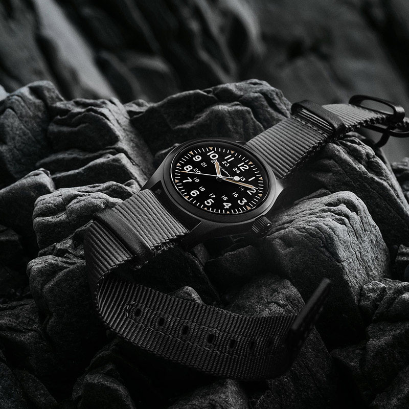 在探险系列腕表、汉米尔顿普尔萨腕表发明之前,汉米尔顿就致力于追求更高标准的精准度。二战期间,汉米尔顿是唯一一家能够为海军批量生产可靠航海精密计时器的公司,并且五次获颁美国陆海军“E”勋章。由于军方对精准腕表的需求量较大,汉米尔顿不仅为海军生产了航海天文钟,还为美国军方供应了一百多万枚腕表。我们的现代卡其野战系列机械腕表就延续了这些备受追捧的经典腕表的军事风格。