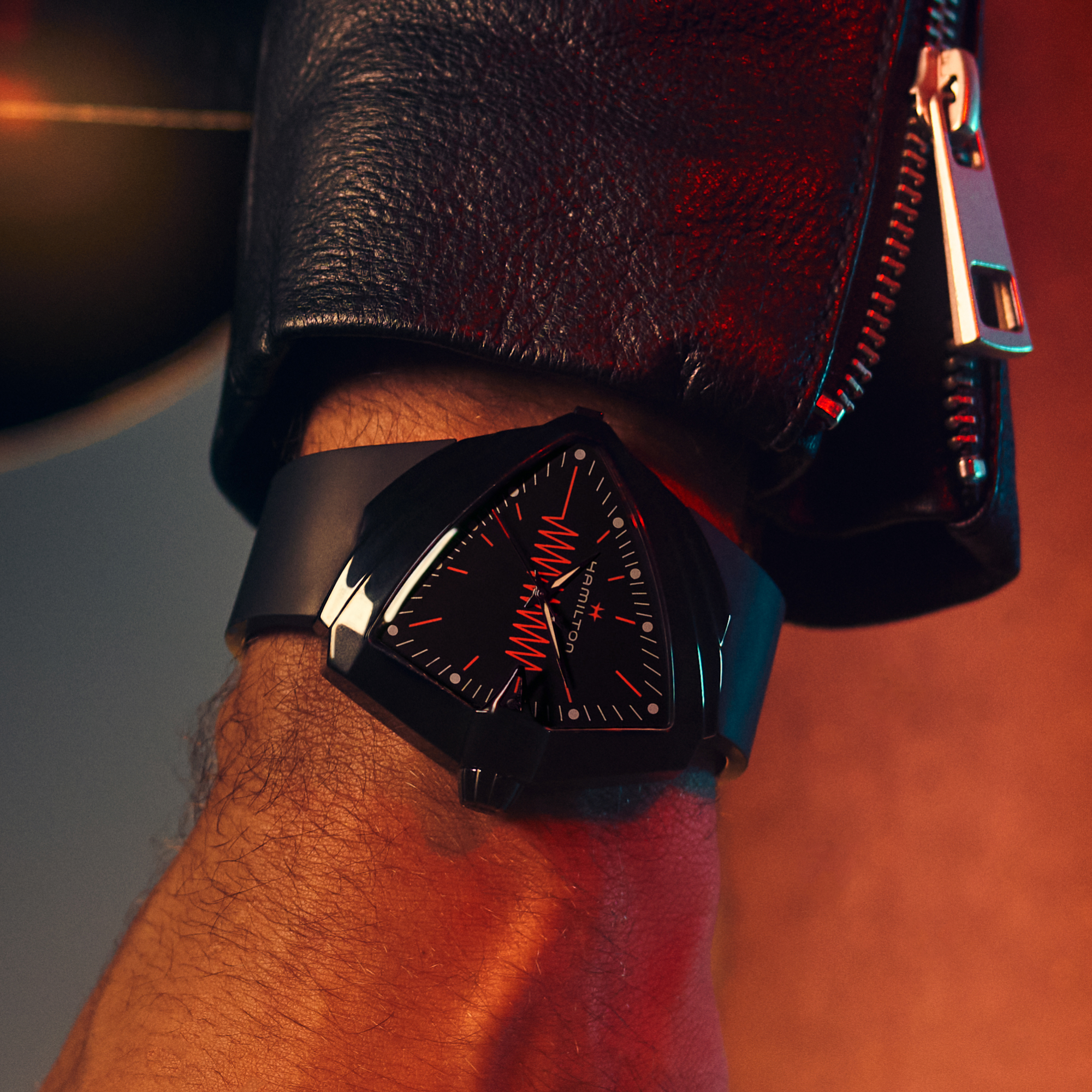 在汉米尔顿,我们的目标是打造超越制表和其他领域预期的先锋腕表作品,不断突破界限。霓虹灯基调折射出热烈氛围,这一大胆开拓的设计将在当代掀起狂潮(或“汉米尔顿电波”)。